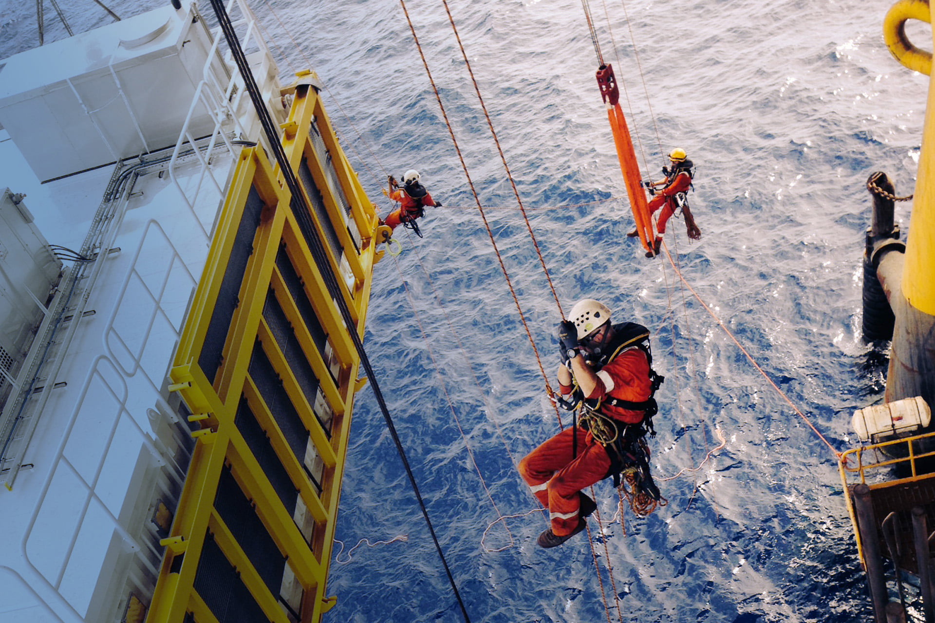 In rope-access work our focus is on safety, which means performing the activities with minimal risks, dangerous occurrences and incidents. To ensure the safety of all parties involved, the rope-access activities are strictly planned and managed for quality and safety. A two-rope system is employed: the working rope provides access and support for the worker, while the safety rope provides an independent back-up system. Clients have awarded our team for showing good on-the-job safety and working practices.